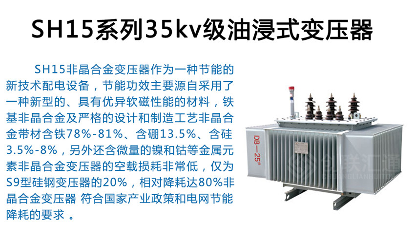 SH15非晶合金鐵心配電變壓器 非晶合金鐵心配電變壓器空載損耗低、節能、環保優勢明顯,符合我政府倡導的“節約資源,保護環境,建設節約型社會”產業政策。 根據中電力發展相關數據統計,2004年我配電變壓器產量為2.4億KVA。如30%使用非晶合金鐵心,可節約電量11.4億KWh,減少燃煤發電有害氣體俳放11000噸。節約燃煤43.3萬噸。 產品適用于5KVA~160KVA的單相變壓器、30KVA~2500KVA(Dyn11)三相五柱式、三相三柱式(Dyn11Yyn0)變壓器,比傳統的變壓器節能70%。 非晶合金是一種新型節能材料,以鐵、硼等元素為原料,采用急速冷卻凝固等特殊工藝使該物質的原子排列呈現無序化的合金,其物理狀態表現為金屬原子呈無序非晶體排列,它與硅鋼的晶體結構完全不同更利于被磁化過程相當容易,從而大幅度降低變壓器的空載損耗,以10KV 315KVA變壓器為例S9-315空載損耗:670W,SH15-315空載損耗170W。若用于油浸變壓器還可減排CO、SO、NOx等有害氣體,被稱為二十一世紀的“綠色材料”