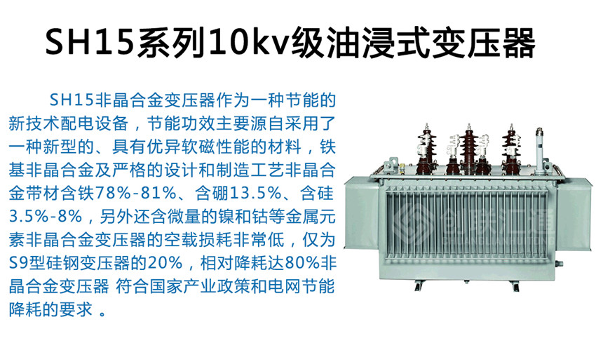 SH15非晶合金油浸式變壓器可用于高層建筑、商業中心、地鐵、機場、車站、工礦企業和發電廠,特別適用易燃、易爆和防火要求高的場所。因此,非晶合金變壓器是戶內供電網絡中最理想的節能型配電設備.